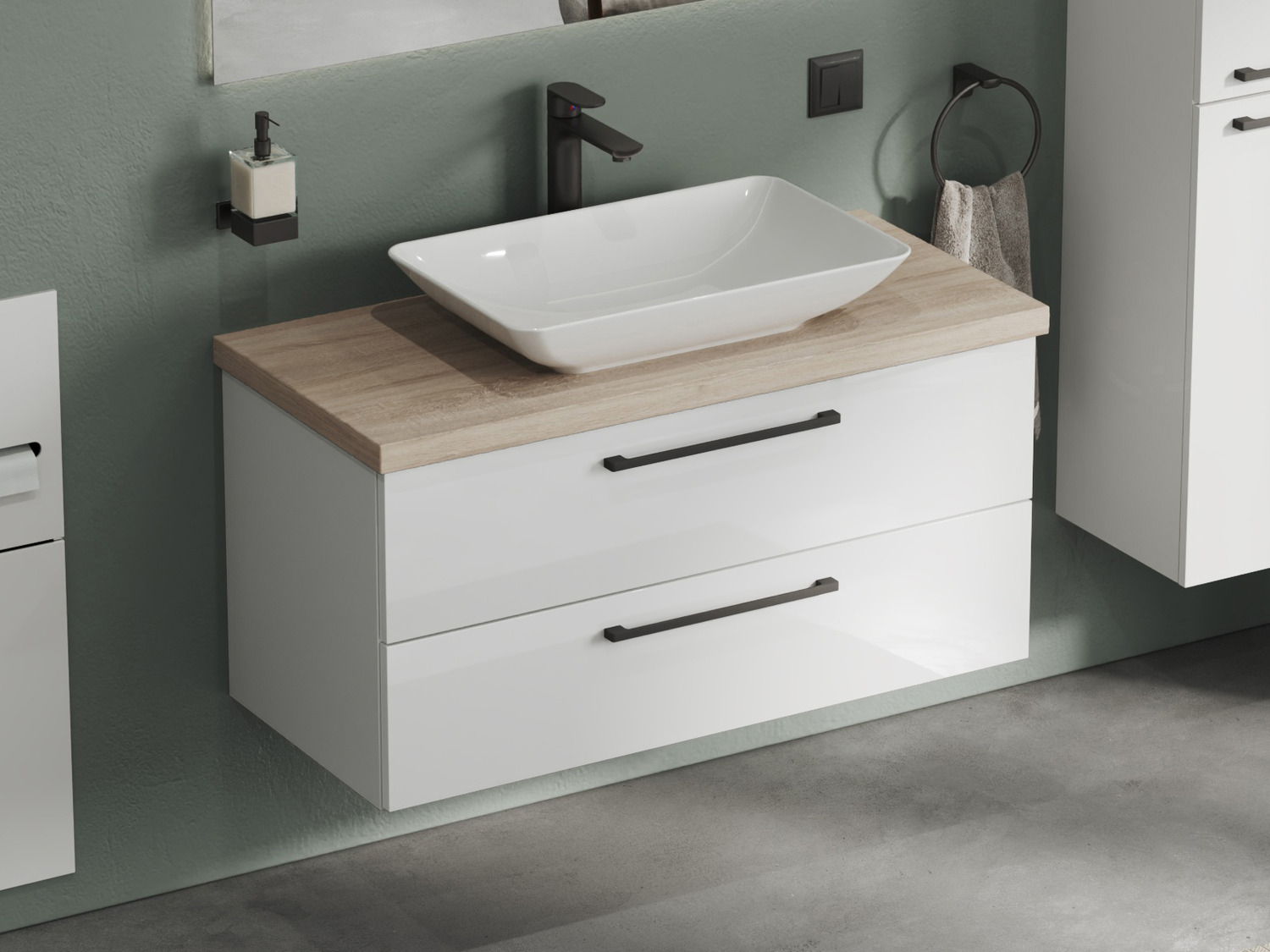 Hochwertiger Badmöbelunterschrank mit perfekter Lackierung Die Unterschränke der Angular-Badmöbelserie werden aus Hölzern bester Wertschätzung gefertigt, veredelt werden sie mit einer mehrfachen aufwändigen Lackierung. Die so entstandene Oberfläche ist besonders geschmeidig und schmutzabweisend. Selbstverständlich garantiert sie dem Korpus auch besten Schutz vor Feuchtigkeit, so kann das Holz nicht aufquellen.