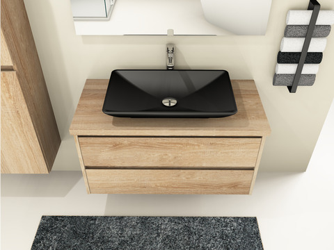 Besonders gefällt mir die Kombination aus Eiche Gold und dem schwarzen matten Waschbecken, sieht richtig edel aus und passt perfekt ins Badezimmer.