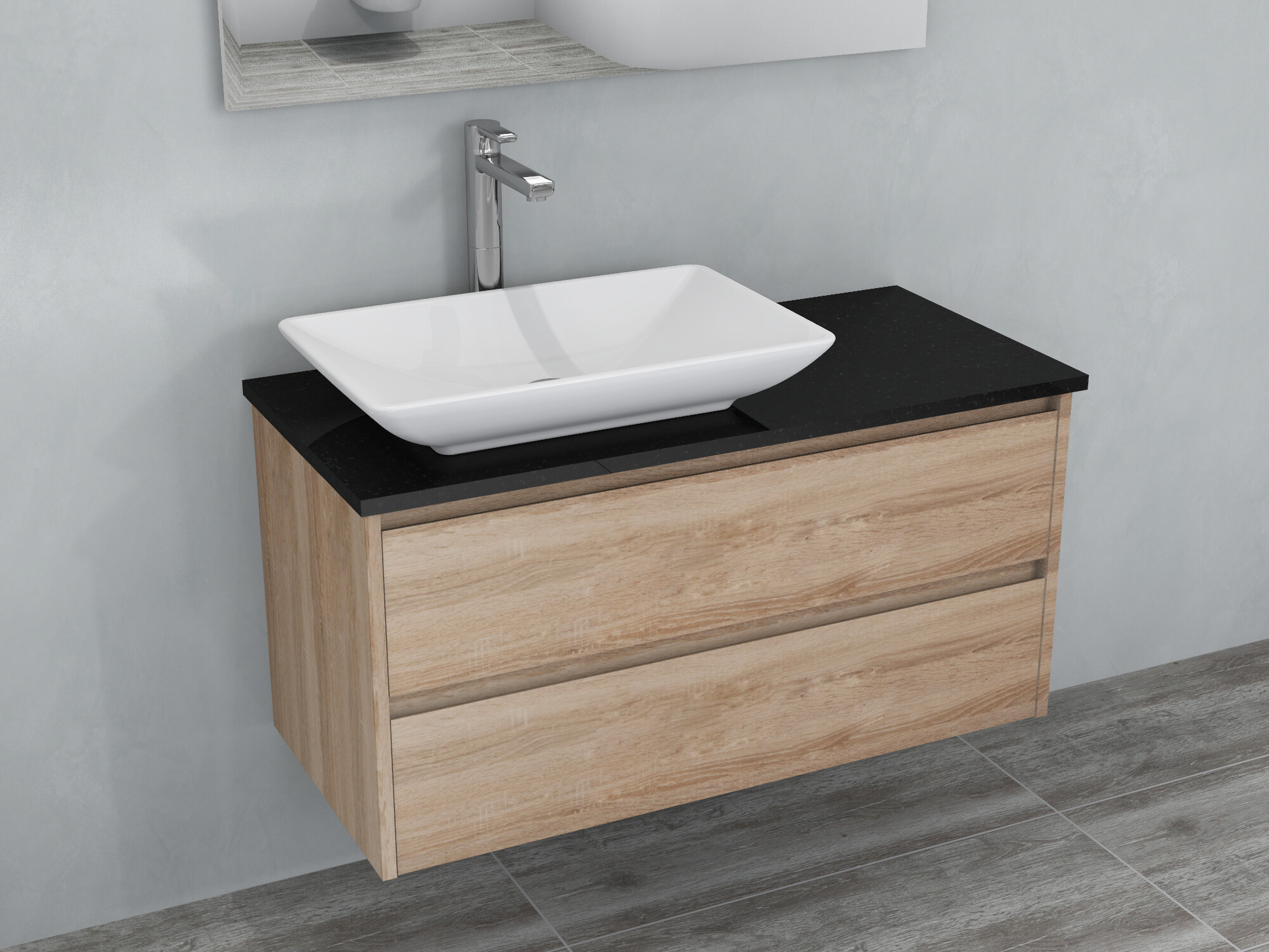 Mit der Kombination aus Keramik, Holz-Unterschrank und Naturstein schafft Aqua Bagno einen absoluten Hingucker in jedem Badezimmer, durch die natürliche Beschaffenheit der Trägerplatte wird die Badmöbelkombination sogar zu einem Unikat.