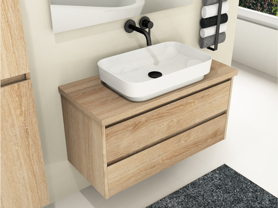 Die Trägerplatten der Natura-Linie sind die ideale Ergänzung zu unseren Waschtischunterschränken. Sie bestehen aus sorgfältig ausgewählten Holzwerkstoffen und sind mit der widerstandsfähigen BrillanTec Natura Oberfläche veredelt. Durch die authentische Holzstruktur entsteht ein natürlicher Look, der dem Bad Wärme und Wohnlichkeit verleiht. Dank feuchtigkeitsresistenter Verleimung und stoßfesten ABS-Kanten sind die Trägerplatten besonders langlebig, wasserbeständig und pflegeleicht – perfekt für den täglichen Einsatz im Badezimmer.