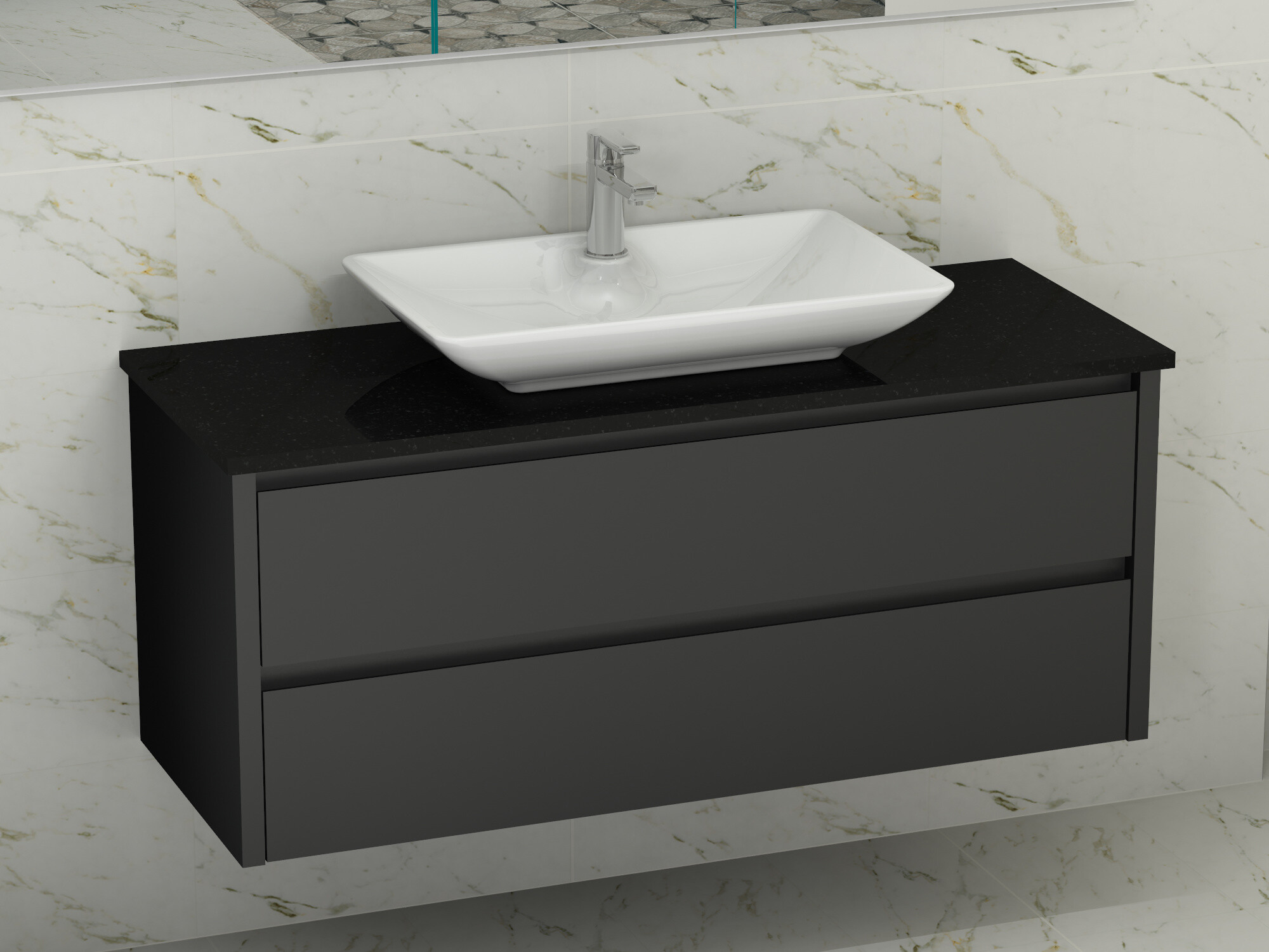 Sofern im Lieferumfang nicht angegeben, sind ggf. dargestellte Armaturen, Spiegel und weitere Dekorationsartikel nicht Teil des Produktes!