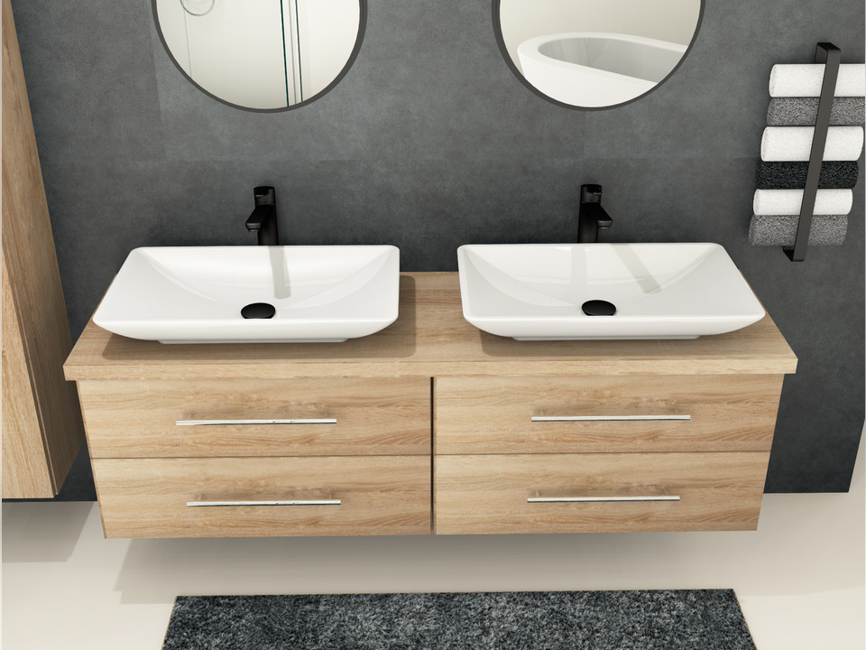 Flex Badmöbel 160, Eiche Gold, Doppelwaschtisch, Trägerplatte