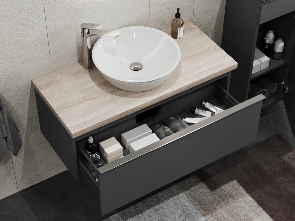 Aqua Bagno Badmöbel Smile 100cm Breite mit einem Keramik Waschtisch KR-45, Holz (MDF) Trägerplatte und Unterschrank Graphit Matt Lackiert, ein Auszug