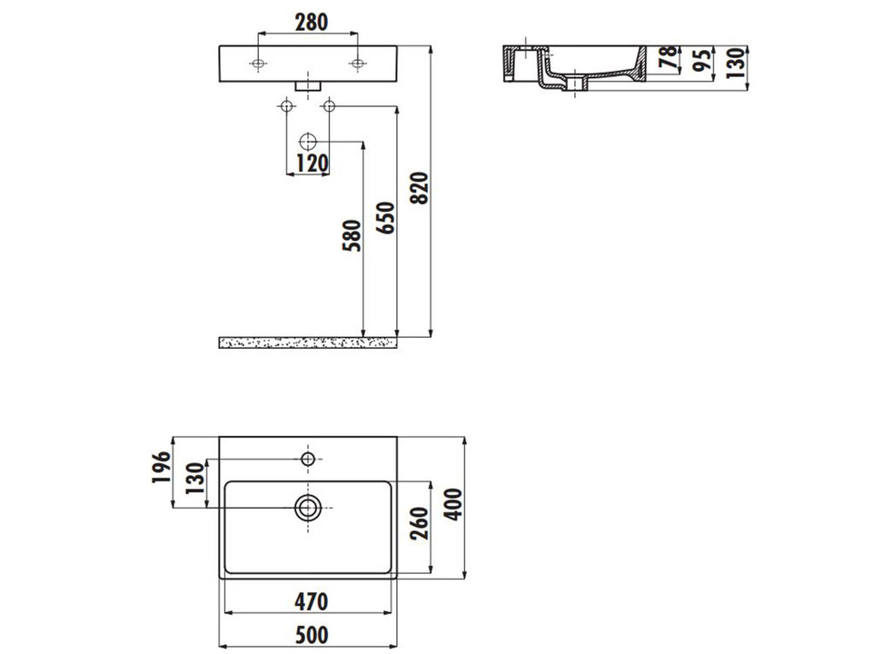Armatur(en), Ablauf und Befestigungsmaterial befinden sich nicht im Lieferumfang.